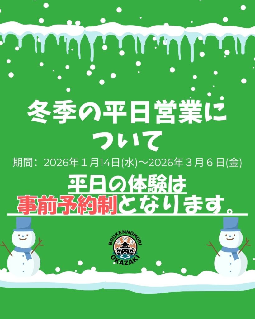 2026年1月14日(水)〜3月6日(金)の期間中、平日のご利用は「事前予約制」となります。