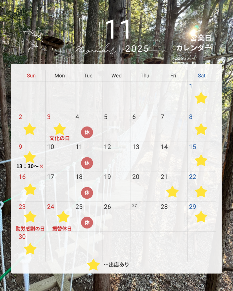 11月もボウケンノモリでおいしく・楽しく・笑顔いっぱいに🌳✨